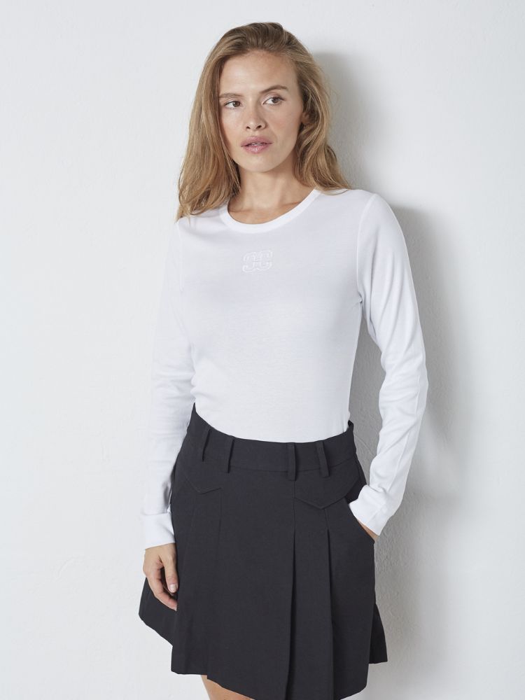 GrannyCC emroidery tee in de kleur wit van het merk co’ couture. Aansluitend. Valt normaal op maat, Lange mouwen, Ronde halslijn met ribboord.
