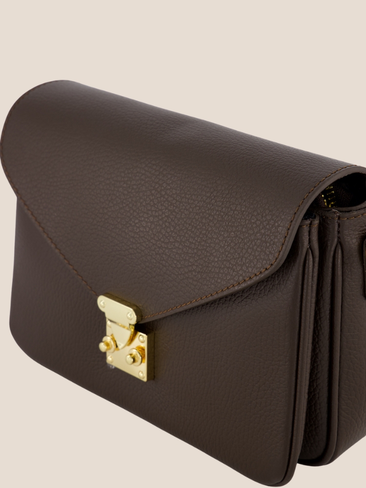De Esther is een stijlvolle schoudertas van generfd leer met goudkleurige details. De tas heeft een praktisch ingedeeld hoofdvak met ritssluiting en biedt voldoende ruimte voor je dagelijkse essentials. Dankzij de verstelbare schouderband draag je de tas comfortabel en op verschillende manieren. Een tijdloos ontwerp dat elegantie en functionaliteit perfect combineert.