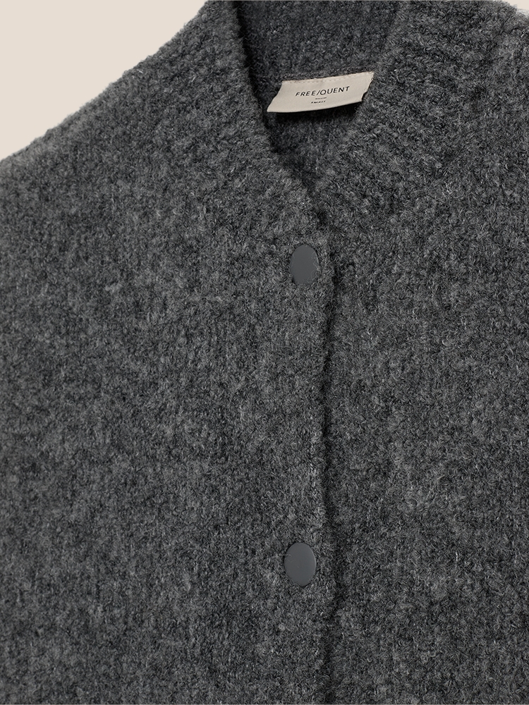 De FQJUMP-waistcoat is een stijlvol gilet van Freequent in de kleur Dark Grey Melange. Het gilet is gemaakt van een zachte, gebreide stof en heeft een eenvoudig knoopsluiting aan de voorkant en een ronde halslijn met ribboord. Een veelzijdig item dat gemakkelijk te combineren is met zowel casual als nette outfits.
