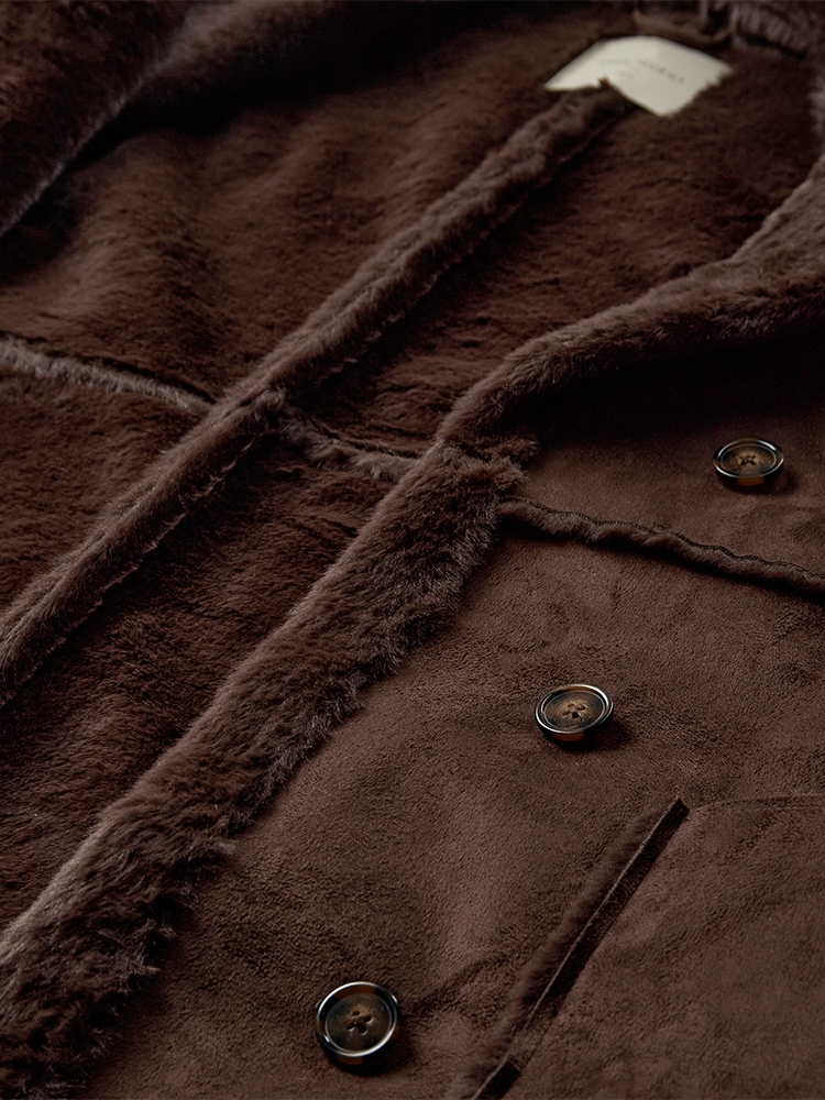 De FQLAMSE-jacket is een lange jas van het merk Freequent in de kleur coffee bean. De jas is gemaakt van een zachte en luxueuze imitatiesuède stof en heeft een zeer zachte voering van imitatiebont. Voorzien van een dubbele knoopsluiting, zakken aan de voorkant, revers en omgekeerde naden voor een stijlvolle en elegante look.