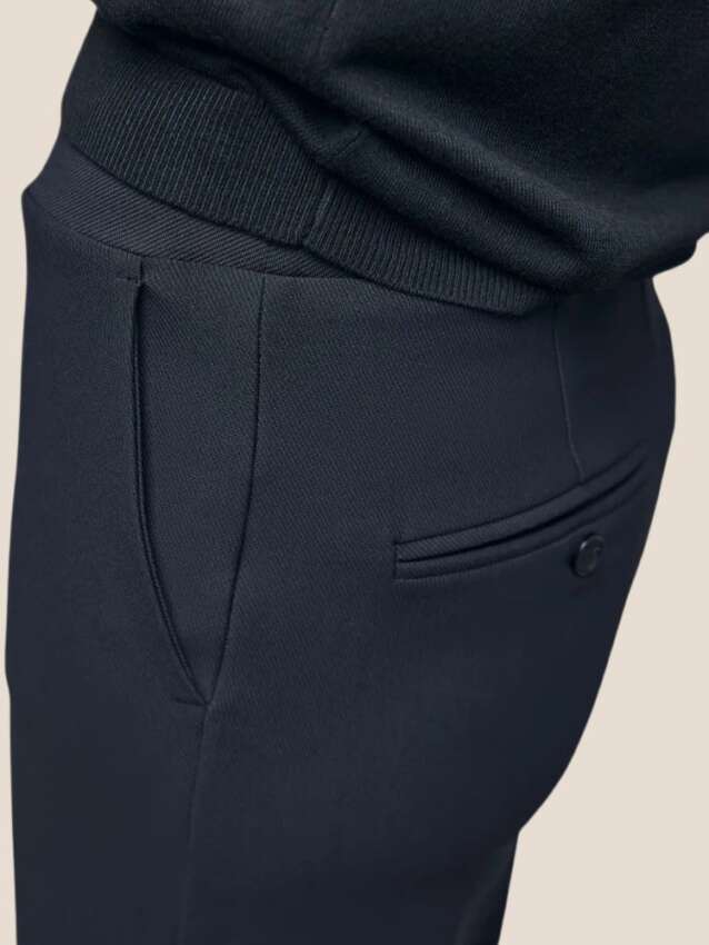 Broek van het merk Corel Amsterdam in de kleur zwart. De broek heeft een elastische tailleband en wijde rechte pijpen. De kwaliteit is een comfortabale, middelzware stretchy materialenmix.