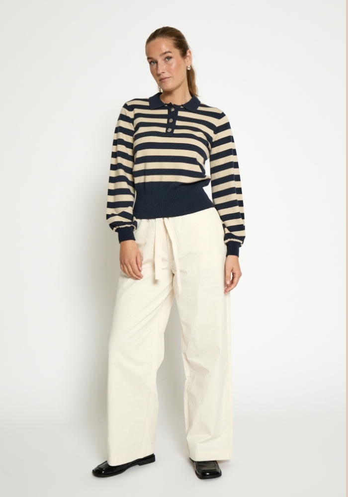 MSKatharina Knit Pullover van het merk Minus. Deze gebreide trui heeft een klassieke polokraag en een relaxte pasvorm, wat zorgt voor comfort en stijl. De lange mouwen en knoopsluiting geven een verfijnde touch, waardoor het een veelzijdige toevoeging is aan elke garderobe.