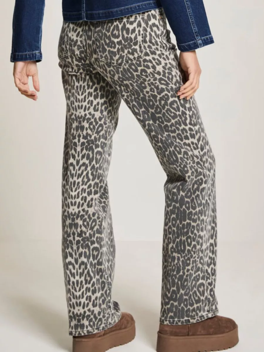 Eve leopard print in de kleur leopard van het merk parami. Eve heeft een hoge taille. De broek zit wijd op het bovenbeen en loopt recht naar beneden.