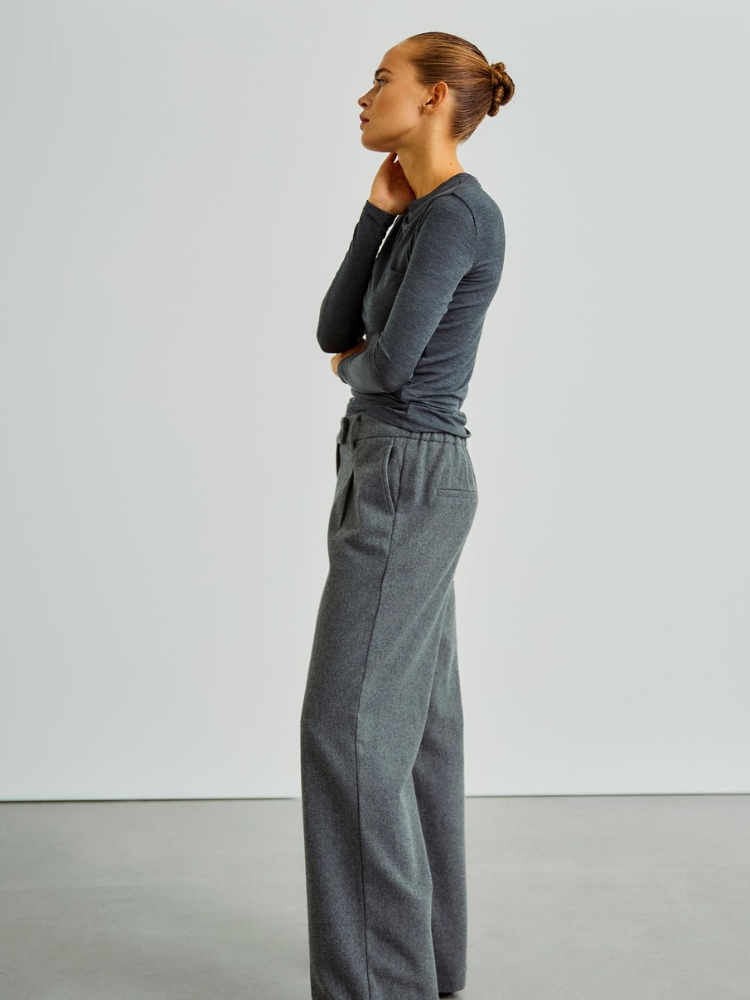 De WBLJOSEFNE tee is een comfortabel T-shirt van het merk With Black in de kleur donkergrijs. Het T-shirt is gemaakt van zachte tencel/wolkwaliteit en heeft lange mouwen, een O-hals en een normale pasvorm met heuplengte. Een veelzijdig item dat gemakkelijk te combineren is met jeans, rokken of casual broeken voor een stijlvolle, alledaagse look.