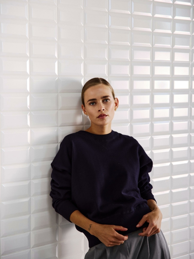 Pasvorm: Het model is 172 cm lang en draagt maat S