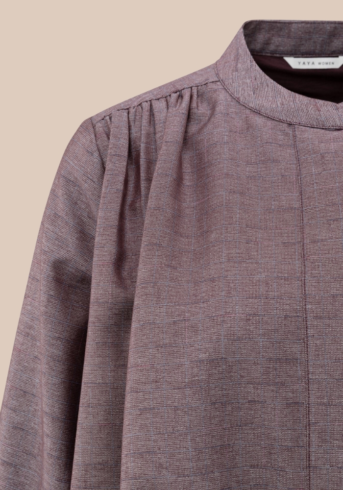 Het Blousejack van het merk YAYA is een eigentijds item met een speelse ballonvorm en een opstaande kraag. Het ontwerp heeft lange mouwen met elastische boorden en een elastische zoom die zorgt voor een vrouwelijke pasvorm. Gemaakt van een zachte, geweven stof met subtiele structuur en verfijnde plooien op de schouders voor extra volume.